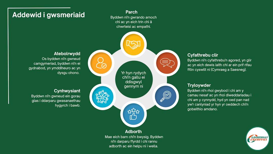 Ein nod yw gwneud yr addewid hwn yn ystyrlon, yn berthnasol, ac yn cael ei gefnogi’n eang—fel ei fod yn dod yn sylfaen gref ar gyfer darparu gwasanaethau sy’n gweithio i chi.